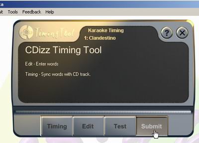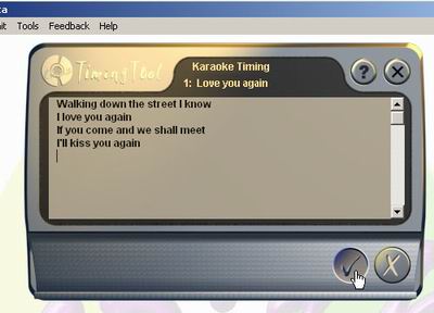 | 1. Select a track. 2. Select "Karaoke Timing tool" from the "Tools" menu to open the Timing tool. |